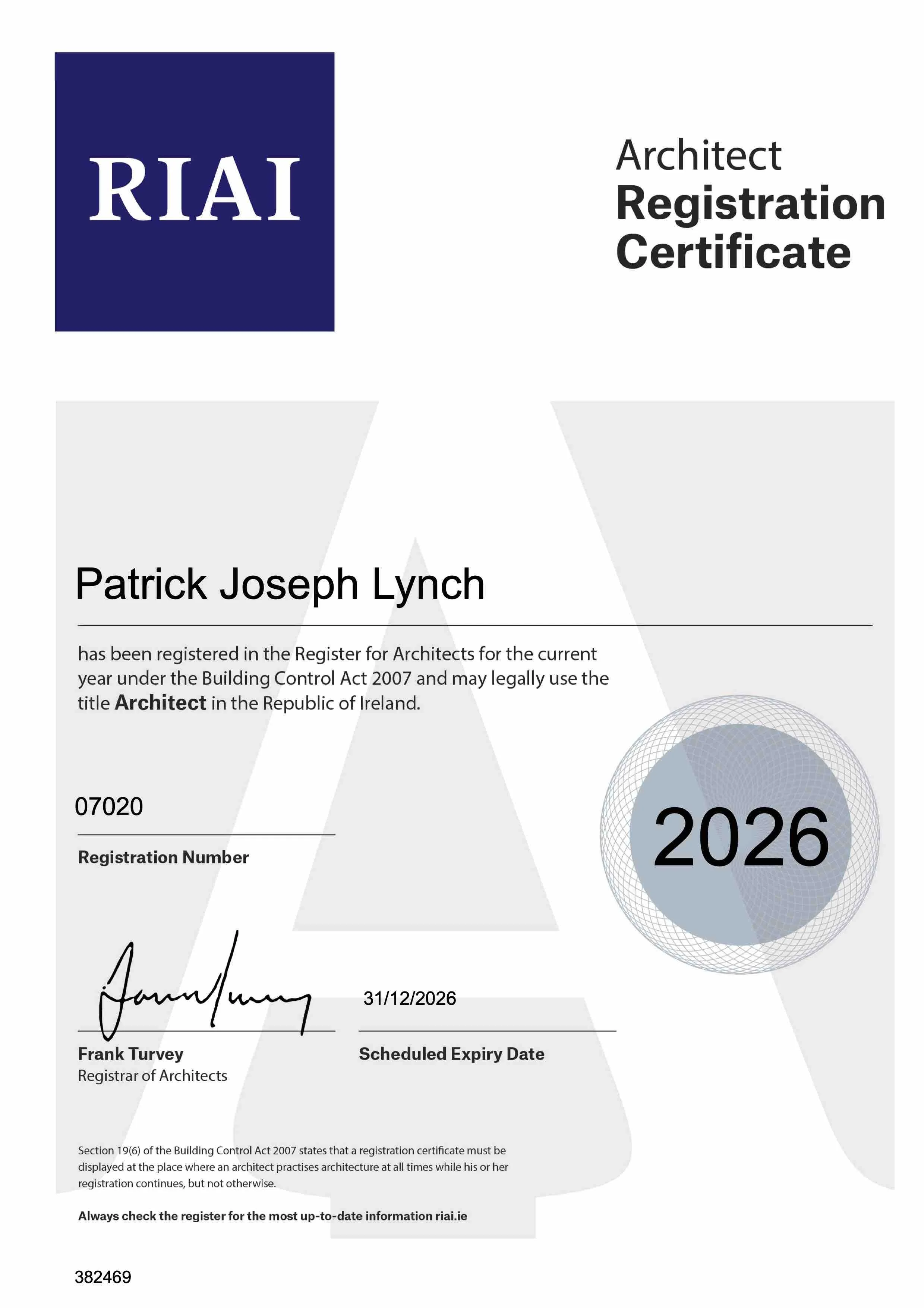 In Ireland, the title 'architect' is registered and a person cannot use the title 'architect' unless they are on the register of Architects. Being placed on the Register reflects the standard and competence of an architect. As an RIAI Registered Practice we comply with strict criteria covering insurance, health and safety and quality management systems to give you peace of mind.